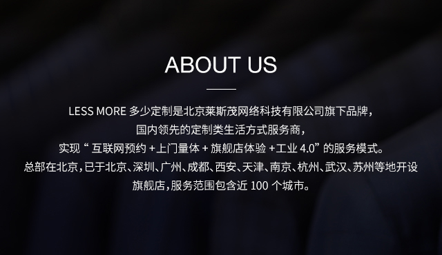 我們的定制產(chǎn)品將在量體結(jié)束后最短7個工作日內(nèi)完成